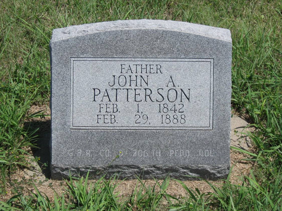 | Patterson | John A. | 2/1/1842 | 2/29/1888 | G.A.R.; Co. D. 206 Penn. Vol | Not a military marker. Obit | |