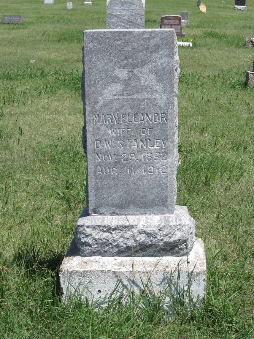 | Stanley | Mary Eleanor | 11/29/1852 | 8/11/1912 | Wife of D. W. Stanley | Obit | |