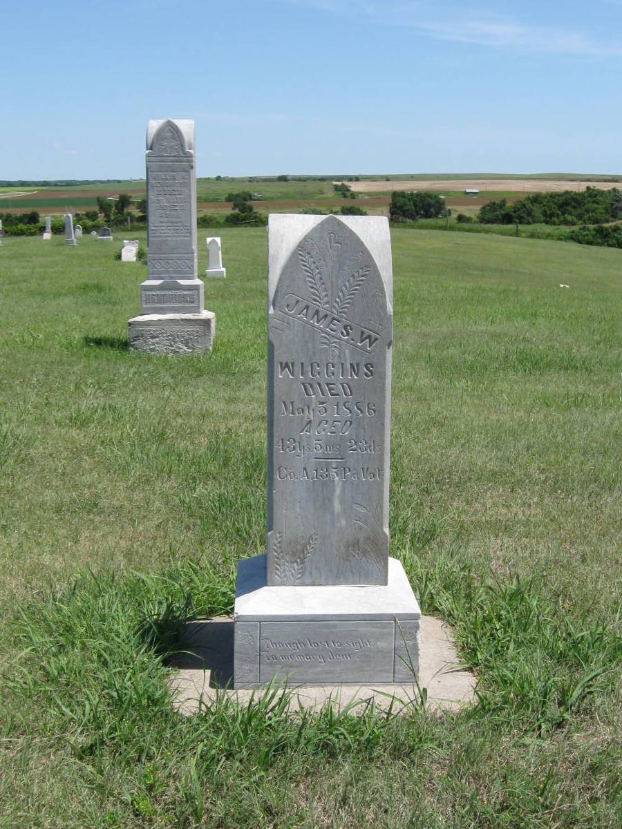 | Wiggins | James W. | 5/5/1886 | Aged 43y 5m 23d; Co. A 135 Pa. Vol; Though lost to sight to memory dear. | Not a military marker. Obit | | |
