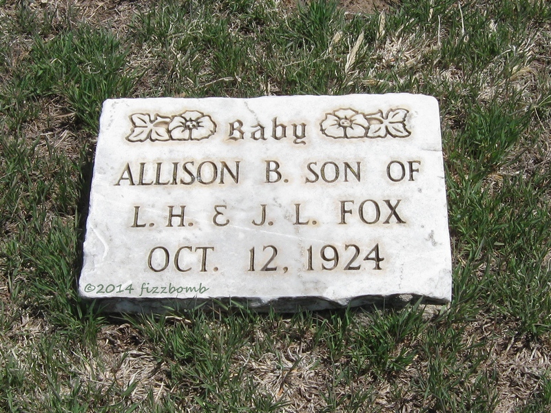 | Fox | Allison B. | 10/12/1924 | 10/12/1924 | Baby son of LH & JL Fox | Son of John Leo & Lucy Helen (Swaim) Fox. | |