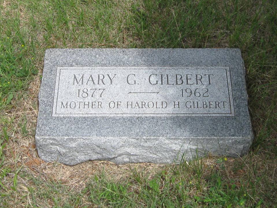 | Gilbert | Mary G. | 1877 | 1962 | Mother of Harold H. Gilbert. | | |