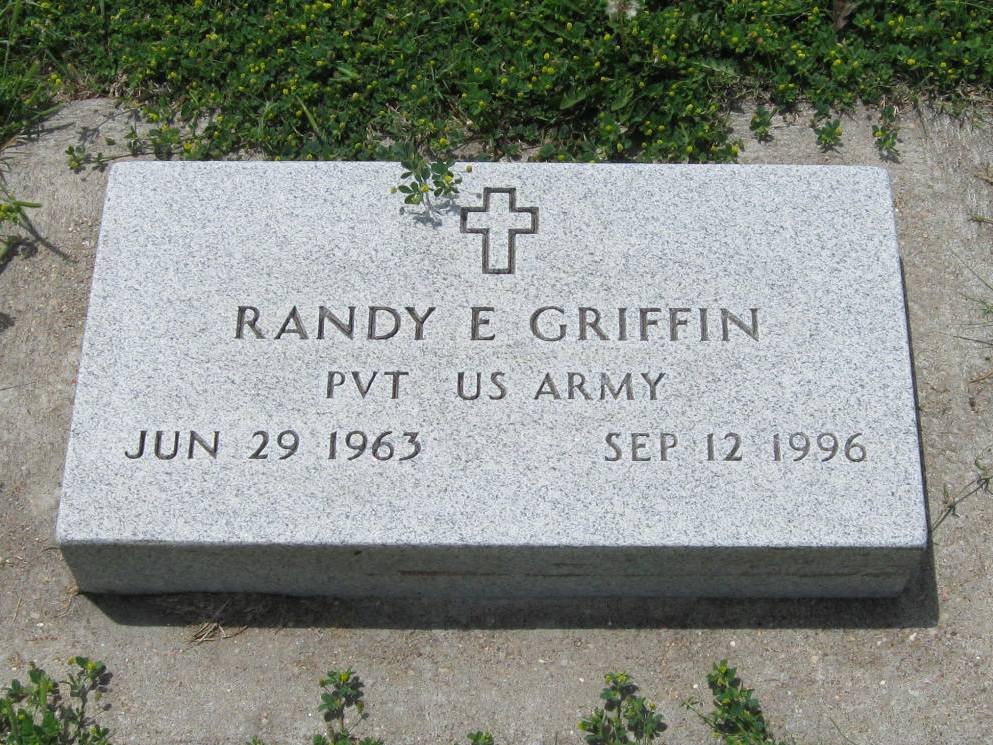 | Griffin | Randy E. | 6/29/1963 | 9/29/1996 | Beloved Son and Brother | Also military marker: Pvt U.S. Army | |