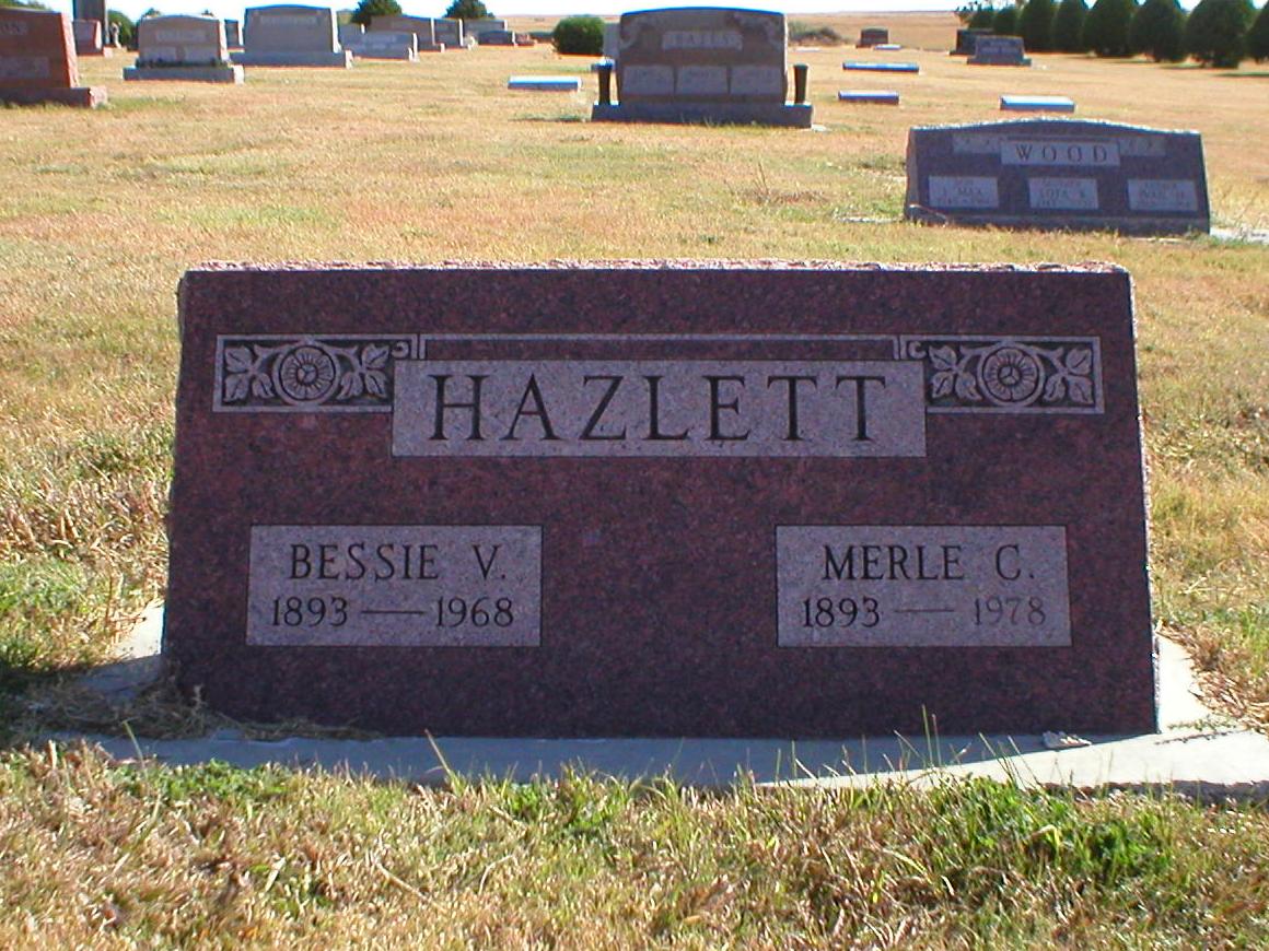 | Hazlett | Merle C. | 1893 | 1978 | Same stone as Bessie V. Hazlett. | | |