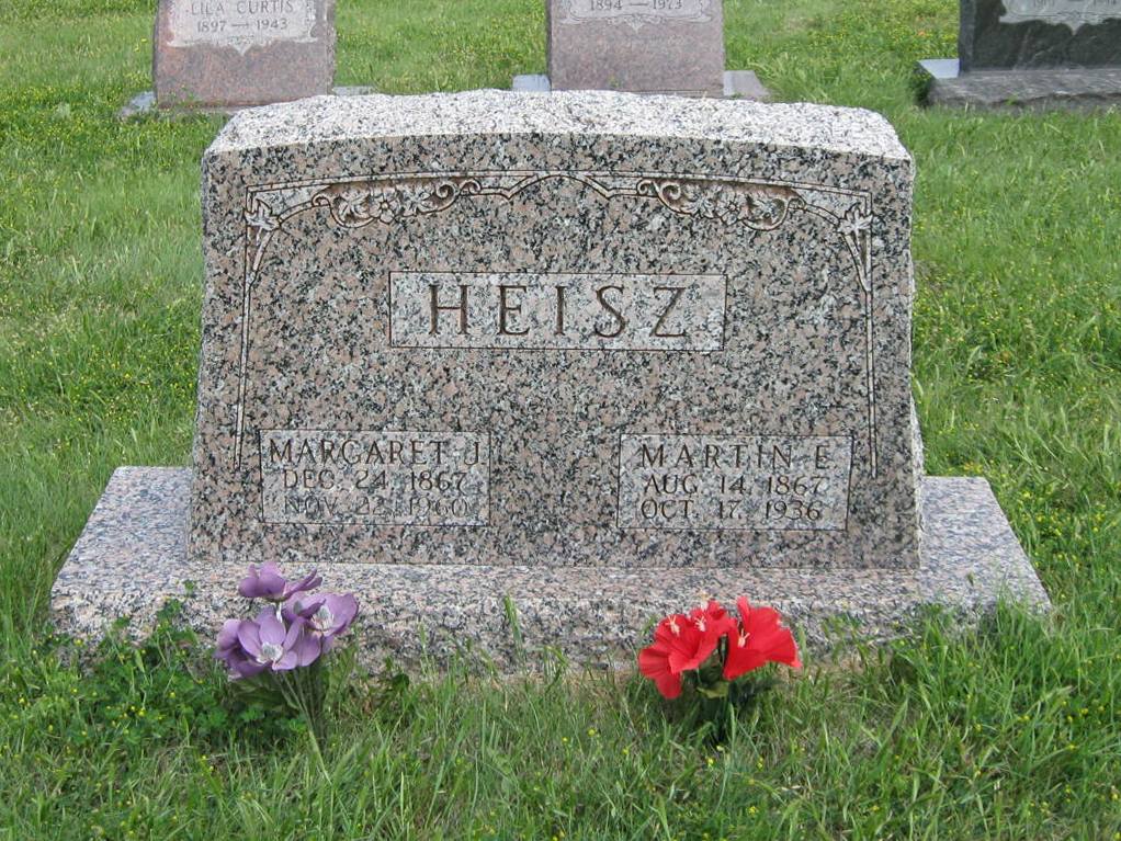 | Heisz | Margaret J. | 12/024/1867 | 11/22/1960 | Same stone as Martin E. Heisz. | | |