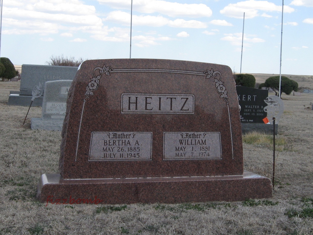 | Heitz | Bertha A. | 5/26/1885 | 7/11/1945 | Mother | Same stone as William (b. 1881) Heitz. Rebekah emblem. | |