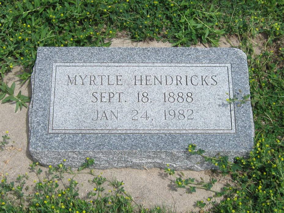 | Hendricks | Myrtle | 9/18/1888 | 1/24/1982 | Same stone as Willis Hendricks. Individual footstones. Rebekah emblem. Children Gladys Colip, Olive Swift & Lota Wood. Obit | | |