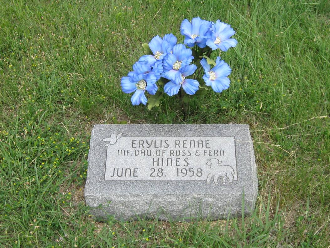| Hines | Erylis Renae | 6/28/1958 | 6/28/1958 | Infant daughter of Ross & Fern Hines | | |