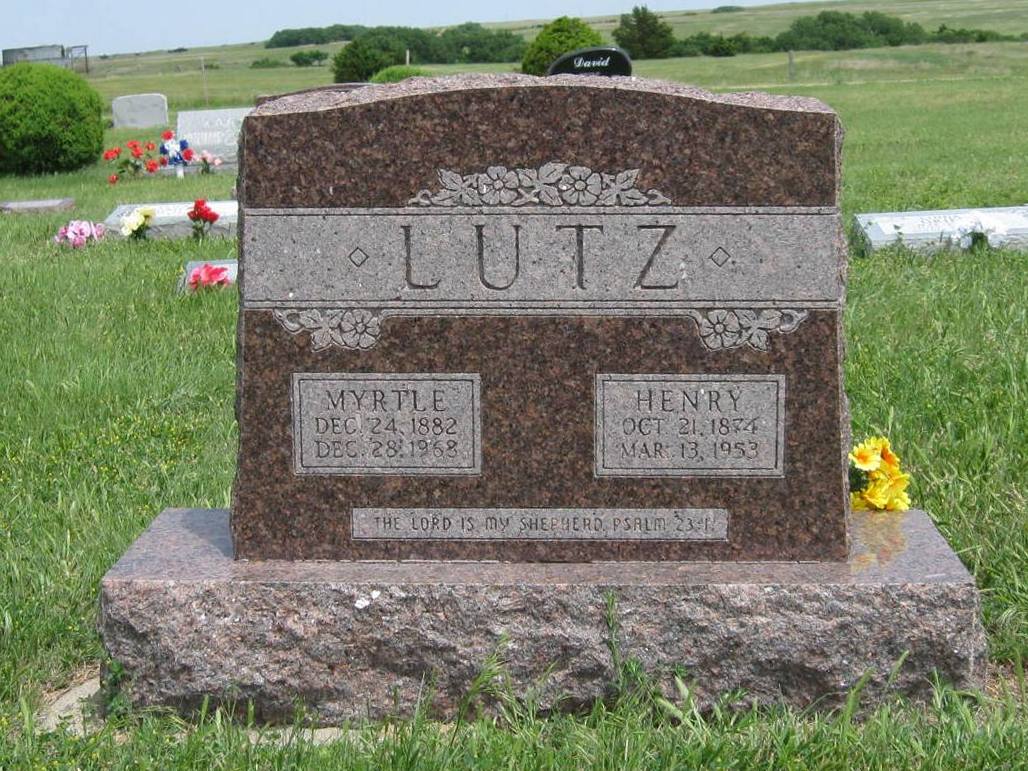 | Lutz | Henry | 10/21/1874 | 3/13/1953 | The Lord is our Shepard. Psalm 23 | Same stone as Myrtle Lutz. | |
