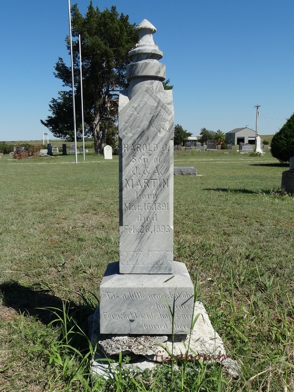 | Martin | Harold J. | 3/16/1891 | 2/26/1893 | Son of J. & A. Martin; Tis a little grave but oh!; Have care, For world-wide hopes are buried there | Stone is broken. | |