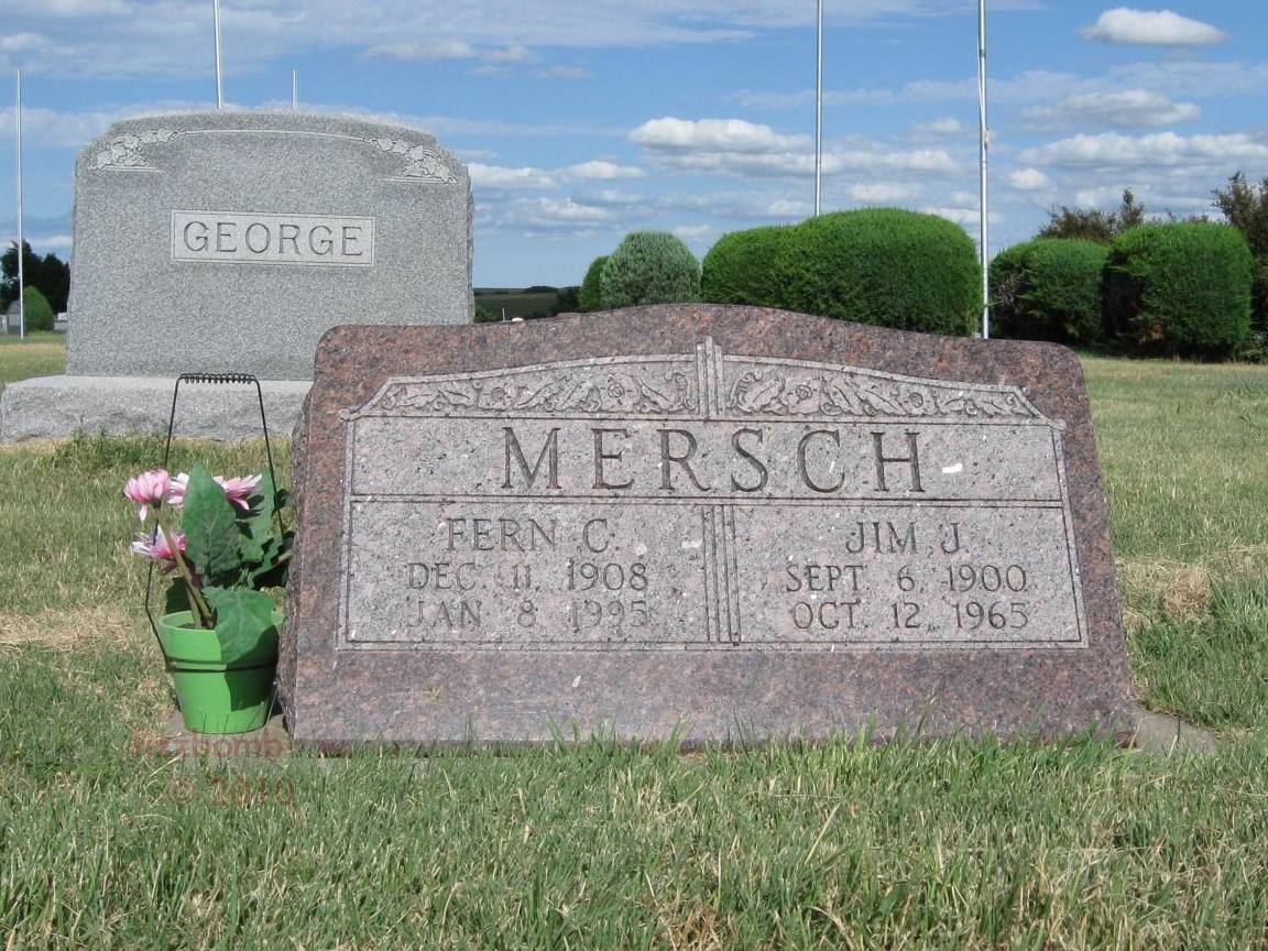 | Mersch | Fern C. | 12/11/1908 | 1/8/1995 | Same stone as Jim J. Mersch. | | |