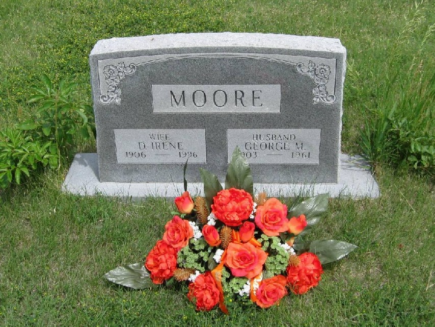 | Moore | D. Irene | 1906 | 1996 | Same stone as George M. Moore. Daughter of James W. & Carrie Zimmerman. | | |