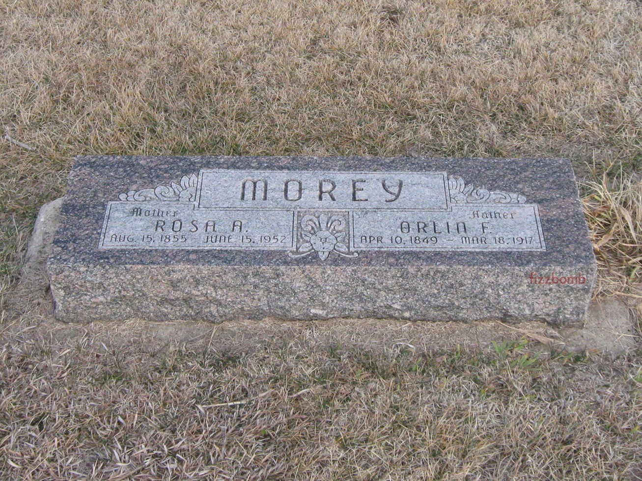 | Morey | Orlin F. | 4/10/1849 | 3/18/1917 | Same stone as Rosa A Morey. | | |