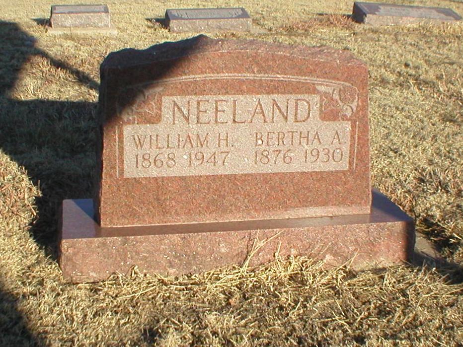 | Neeland | Bertha W. | 1876 | 1930 | Same stone as William H. Neeland. | | |